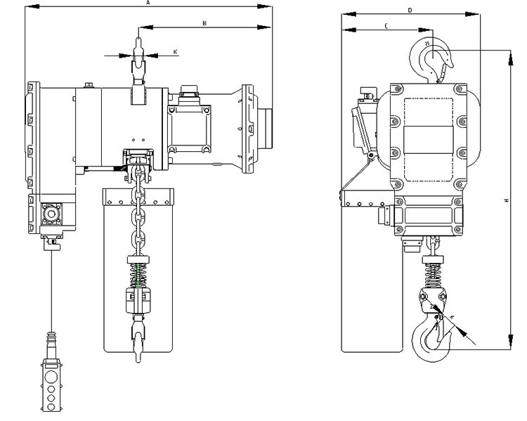 BHH防爆環(huán)鏈電動(dòng)葫蘆簡(jiǎn)介:BHH型防爆電動(dòng)葫蘆是小噸位、低起升高度的鋼絲繩電動(dòng)葫蘆的理想替代產(chǎn)品。一般安裝在架空工字鋼軌道上,或懸掛在固定架和專(zhuān)用吊具上起吊貨物及與設(shè)備配套到等,廣泛應(yīng)用到工廠、礦山、倉(cāng)庫(kù)、碼頭、建筑工地、商場(chǎng)、賓館等行業(yè),尤其適合低矮場(chǎng)合及存在灰塵、潮濕腐朽氣體等環(huán)境。BHH型防爆環(huán)鏈電動(dòng)葫蘆是參照并吸收了國(guó)內(nèi)外同類(lèi)產(chǎn)品的結(jié)構(gòu)優(yōu)點(diǎn)而設(shè)計(jì)的,它不但具備了國(guó)外產(chǎn)品的很多優(yōu)點(diǎn),而且還具備維修方便、實(shí)用可靠、價(jià)格低廉等優(yōu)點(diǎn),從而更適應(yīng)于我國(guó)的實(shí)際國(guó)情。